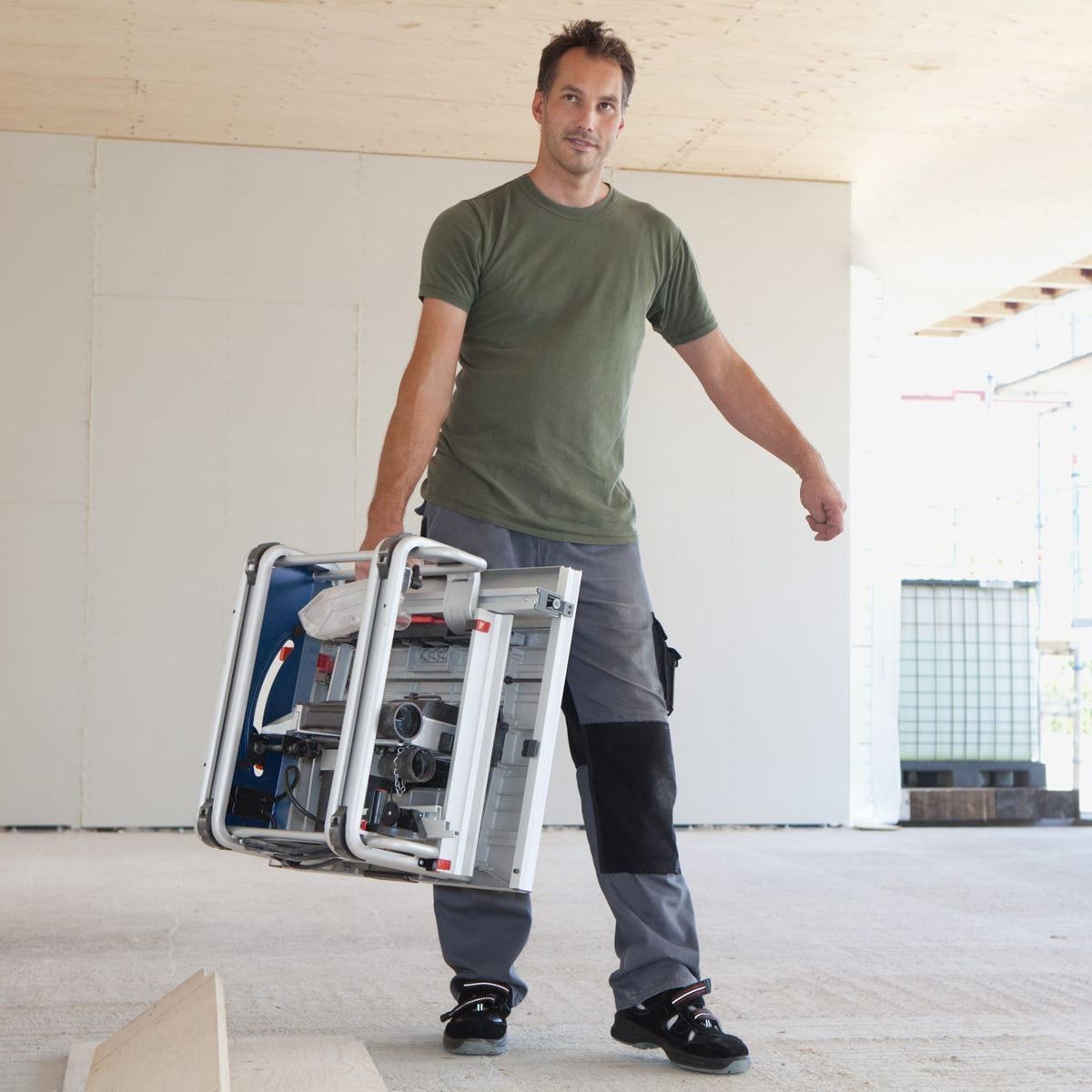 The Bosch GTS 10 J Professional Table Saw combines a compact design with multiple grip areas for easy transport. Powered by a robust 1,800W motor, it offers fast cutting performance. Features include a tool-free lowering riving knife for quick adjustments, double insulation, overload protection, soft start, and spindle lock. Ideal for cutting wood, composites, and laminates, it’s compatible with table saw stands and the Bosch Click & Clean dust extraction system. Perfect for precise custom cuts and rip cutting.