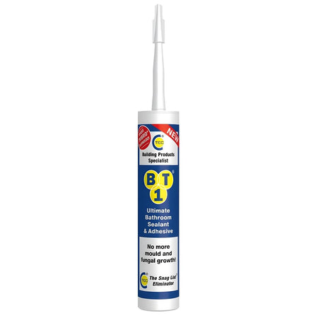 The C-TEC BT1 Ultimate Bathroom Sealant & Adhesive – white is a high-performance sanitary sealant formulated with advanced TRIBRID® Technology for superior hygiene and durability. Independently tested under MOD IOS 22196:2011, it reduces bacteria by up to 99.99%, making it ideal for bathrooms, hospitals and clinical environments. This solvent and isocyanate-free sealant offers excellent elasticity with 300% elongation, preventing shrinkage, cracking or mould growth over time. BT1 bonds effectively to wood, metal, brickwork, concrete, glass, ceramics and uPVC, even in wet conditions. EC1 Plus Certified and ETAG approved for bonding shower panels without mechanical fixings, it delivers long-lasting, low-emission performance.