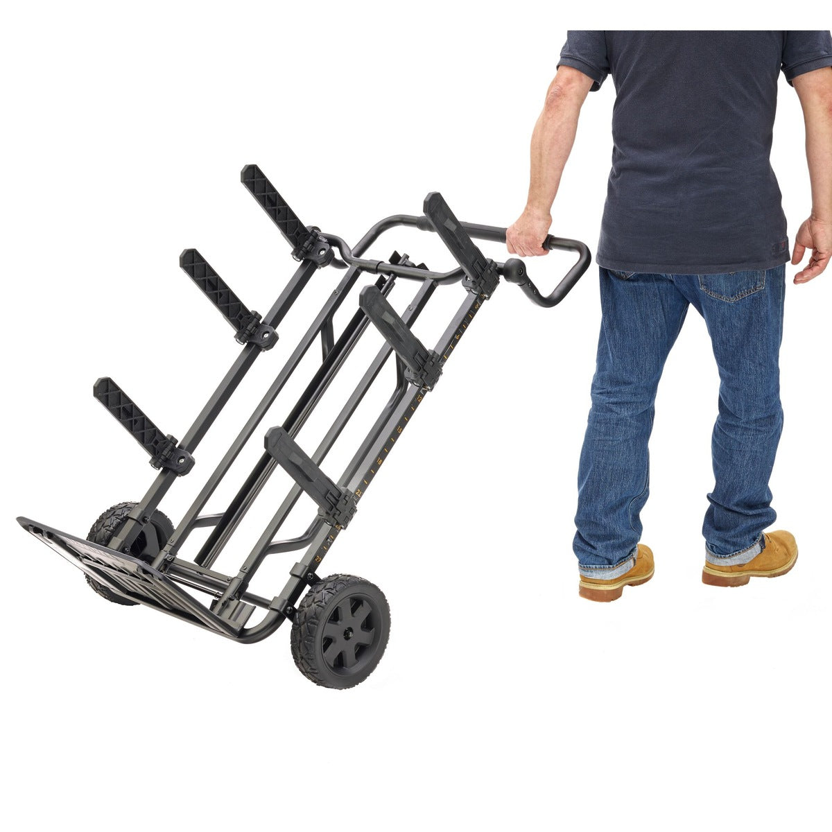 The DEWALT TOUGHSYSTEM™ Heavy-Duty Trolley features a locking system to secure all the loaded toolboxes, plus it can also be used to carry additional equipment and materials.