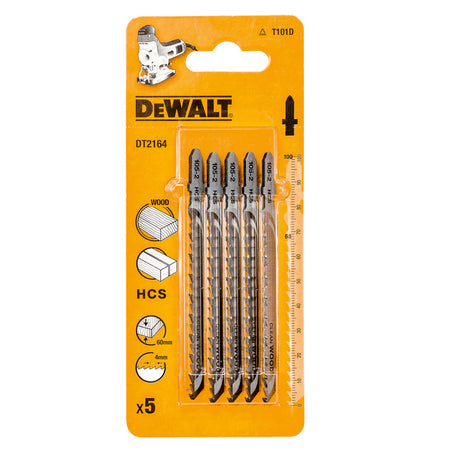 Barcode: 5035048033128 Part Number: DT2164-QZ Blade Reference: 105-2 Material: HCS Overall Length: 100 mm Working Length: 68 mm Tooth Pitch: 4 mm Max Depth of Cut: 60 mm Quantity: 5 Piece