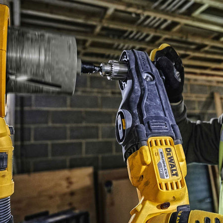 The DEWALT DCD470 XR FlexVolt Right Angle/Diamond Core Drill delivers high-speed drilling performance, making it ideal for drilling within concrete block, brickwork or wood.