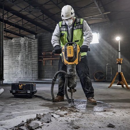 Brushless motor offers increased runtime and durability with reduced maintenance Perform & Protect: low vibration at 6.1m/s², minimising user fatigue and increasing productivity Floating mechanism for fully encased vibration reduction Class leading 41 joules of impact energy Wireless Tool Control transmitter which allows the tool to be wirelessly paired with another Wireless Tool Control device, such as a dust extractor, for automatic activation and shut down Smaller and less intrusive tool holder offers reduced weight and improved chisel visibility Removeable side handles ideal for trench work 28mm HEX toolholder for a wide variety of readily available accessories Tool Connect Tag securing location allowing inventory management and tracking via the Tool Connect app. DCE041 Tool Connect Tag sold separately LED service indicator Compatible with DWH052 dust extraction adapter for dust-free operation