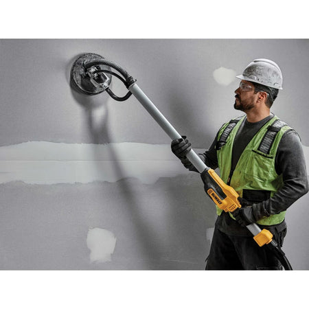 The DEWALT DWE7800 Drywall Sander has a powerful motor ensuring maximum operational performance and variable speed for maximum control. Dust ingress protection also helps to extend motor life. The handle features ergonomic gripping areas for added comfort and reduced fatigue. Fitted with a reinforced dust shroud preventing excess mess, as well as fine dust particles, expelling into the area you are working in, providing a cleaner and healthier working environment. Brushed sanding pad surrounds protect the workpiece from accidental damage.