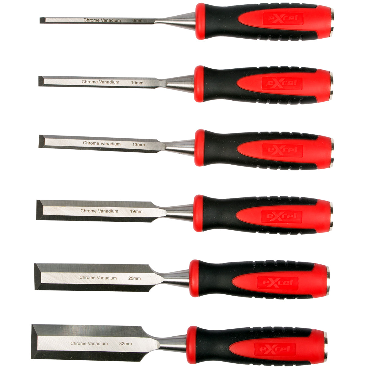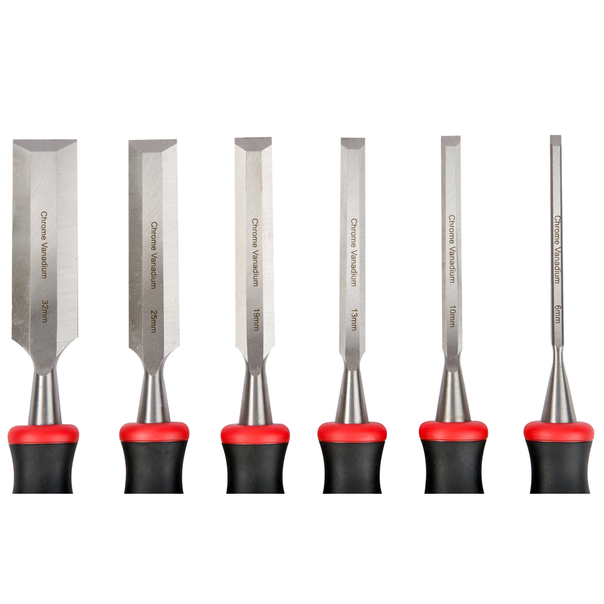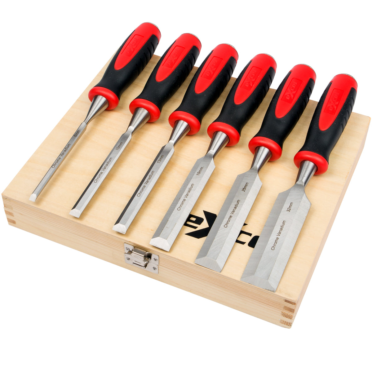 Safety: The chisels have impact resistant polypropylene handles with soft grips for user comfort. Design: Bevel edge design is ideal for cutting into tight corners. They have steel striking caps and heavy-duty, drop forged ferrules and tangs for working strength. Material: These chisel have drop forged chrome vanadium steel blades which have been hardened and tempered. Suitability: Suitable for use on soft or hard wood.