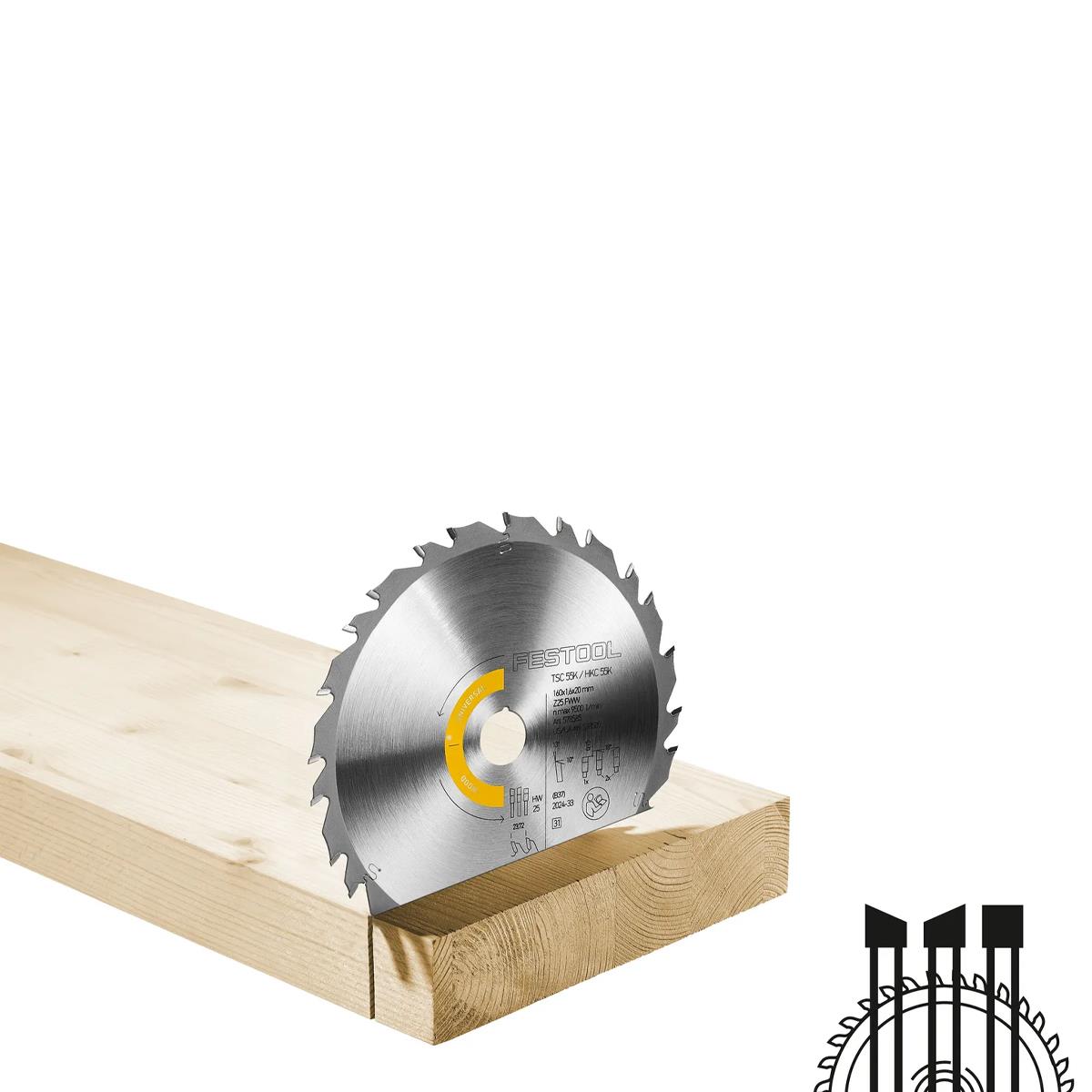 Festool 160mm x 1.6mm x 20mm FWW 25T Wood Universal Saw Blade - 578585