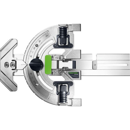 Additional positioning bolts – for a safe storage area, including for materials with a rounded workpiece edge High-quality design for making precise angled cuts from -60° to +60° Intuitive adjustment – all of the controls can be operated from above without tools Long contact edge and viewing window for easy aligning with the workpiece edge Quick and easy to connect to the guide rail using the quick-clamping lever – and completely self-aligning