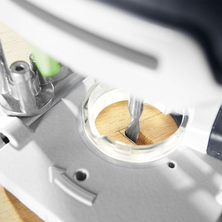 Festool LM-OF 1010 R Light Module 578055 is an accessory for the Festool OF 1010 R router that provides shadow-free illumination of the workpiece. It is designed to be easily retrofitted to OF 1010 REBQ routers manufactured from september 2021 onwards. The light module consists of an LED light ring that is integrated directly into the base plate of the router, and a separate, removable battery unit. The battery unit can be charged via a USB-C interface, and provides up to six hours of light on a single charge. The light ring can be adjusted to two different brightness levels to suit the working environment.