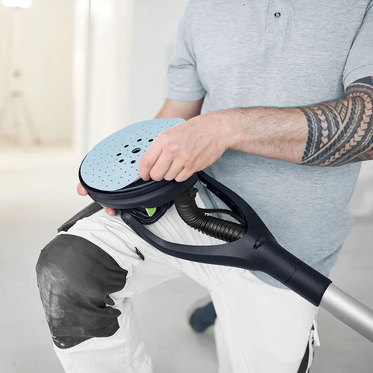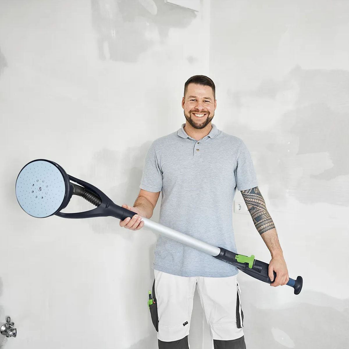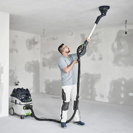 The Festool PLANEX LHS 2-M 225 EQ 110V Long-Reach Sander is designed for achieving perfect surface quality with its eccentric sanding motion that ensures a scratch-free finish. Its adjustable suction power reduces strain on the arms and back by allowing the tool to hold its own weight against walls and ceilings. With a practical 1.4 m length, it is ideal for standard room heights, while the T-shaped handle provides extended reach when needed. Built with durable components and a brushless EC-TEC motor, it guarantees long-lasting reliability. Combined with Festool’s CT 36 E AC PLANEX mobile dust extractor and GRANAT abrasive system, it delivers virtually dust-free, high-quality sanding every time.