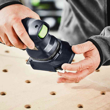 A healthy working environment and less rework: In combination with the mobile dust extractor or the long-life dust collection bag and attachable PROTECTOR for smooth sanding along window surfaces, frames and panelling For continuous use: Long-life dust collection bag which can be emptied and reused, made from extra-durable nonwoven polyester Reliable extraction with the new CLEANTEC connecting system: The integrated bayonet fitting quickly and reliably joins the connecting sleeve of the suction hose to the extractor connector on the power tool. And it is just as easy to detach. You decide when the connection is undone: and only you Up to 25% greater material removal capacity: The MMC control electronics transfer the power of 250 watts directly to the work surface Work effortlessly: Thanks to the compact design, weight of just 1.2 kg and a perfectly balanced weight distribution