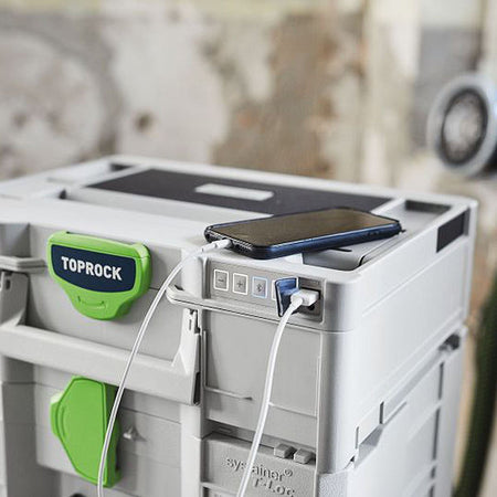 The Festool SYS3 BT20 M 137 230V GB Bluetooth Speaker 205720 is a smart audio solution built for professionals who value quality sound on the job. Designed in the shape of a Systainer lid, it seamlessly integrates into your Festool storage system without taking up extra space. It delivers rich, stereo-quality audio. A built-in rechargeable battery offers up to 10 hours of runtime, while the USB port doubles as a power bank. Durable and portable, it’s the perfect companion for workshops and construction sites.