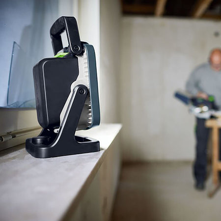 Bright: At 5000 lumens for optimum illumination of medium-sized areas. Compatible: With all Festool 18V battery packs (except Ergopack) Flexible: Brightness infinitely dimmable. From floor to ceiling: Swivelling lamp body for optimum illumination. Independent: No power or too little light on the construction site? Not a problem with the cordless construction light. Long-lasting: Lights up for half an hour per Ah, i.e. two hours with a 4.0 Ah battery pack at the brightest level (battery not included with the product). Replicates daylight: Natural light colour (5000 K) for an optimum working light. Robust: Shock-proof and scratch-resistant, dust and splash-proof housing for tough construction site use (IP 54). Versatile: Lightweight and compact, with a carrying handle for when you're on the move. Magnetic, can be hung on the wall or positioned on a tripod. Well-positioned: With integrated magnets for quick fixing to metal surfaces.