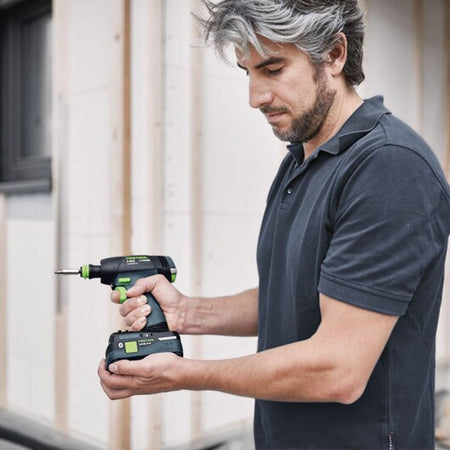 The cordless drill and battery pack are fully covered by the comprehensive support provided by Festool Service