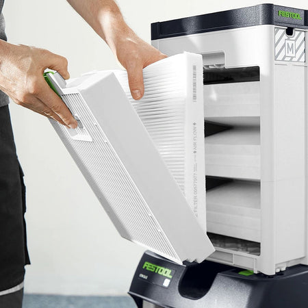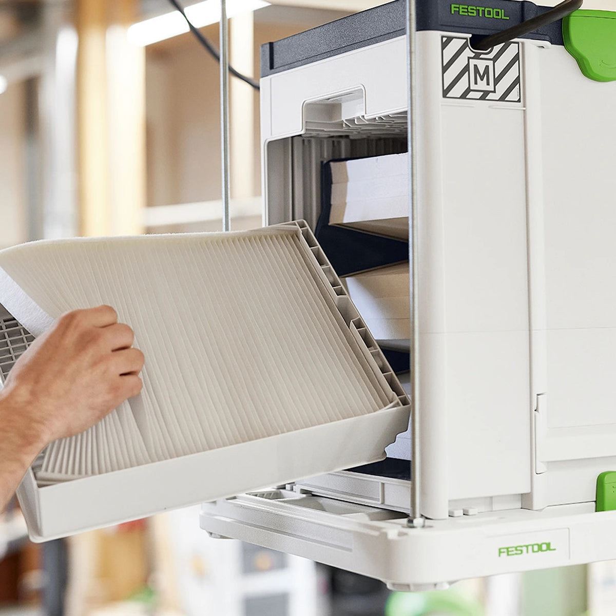 The Festool VF‑SYS‑AIR/5 preliminary filter 577977 is a lightweight, pre-filter that captures the majority of airborne dust before it reaches the main SYS‑AIR or SYS‑AIR HEPA filters. It features a two-stage design and can be removed or replaced effortlessly without tools, helping extend main filter life and reduce overall costs . Sold in packs of five, it’s an easy-to-maintain, cost-effective accessory for keeping your air purifier running smoothly.