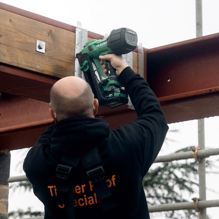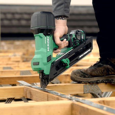 The HiKOKI NR1838DKAW9Z Metal Connector Nailer delivers fast, precise, and reliable fastening for metal connector applications. Its Strap-Tite probe tip ensures accurate nail placement across different connector types, while firing up to three nails per second for exceptional productivity. The Air Spring Drive System provides gasless, fume-free performance with a smooth, pneumatic-like feel and no need for compressors or hoses. Lightweight and compact in design, it offers excellent control and can drive up to 850 nails per charge with a 5.0Ah battery. Built-in safety features, dry-fire lock-out, and a powerful LED enhance protection, efficiency, and visibility on the job.
