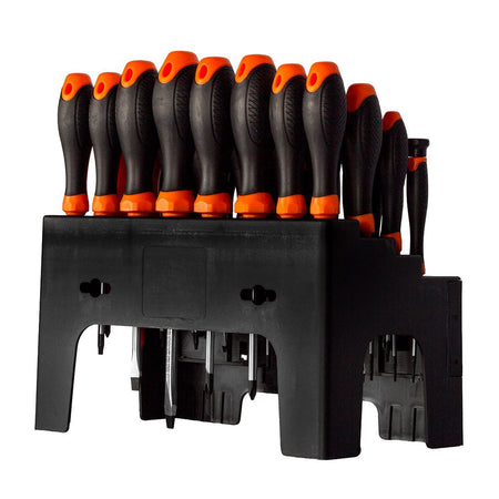 Meet the bench-top hero your workshop’s been waiting for. The Kendo Screwdriver & Bit Station bundles full-size, stubby and precision drivers with a wall-worthy spread of bits, hex keys and nut-driver sockets—all parked in a sturdy organiser that keeps everything visible, labelled and ready to grab.