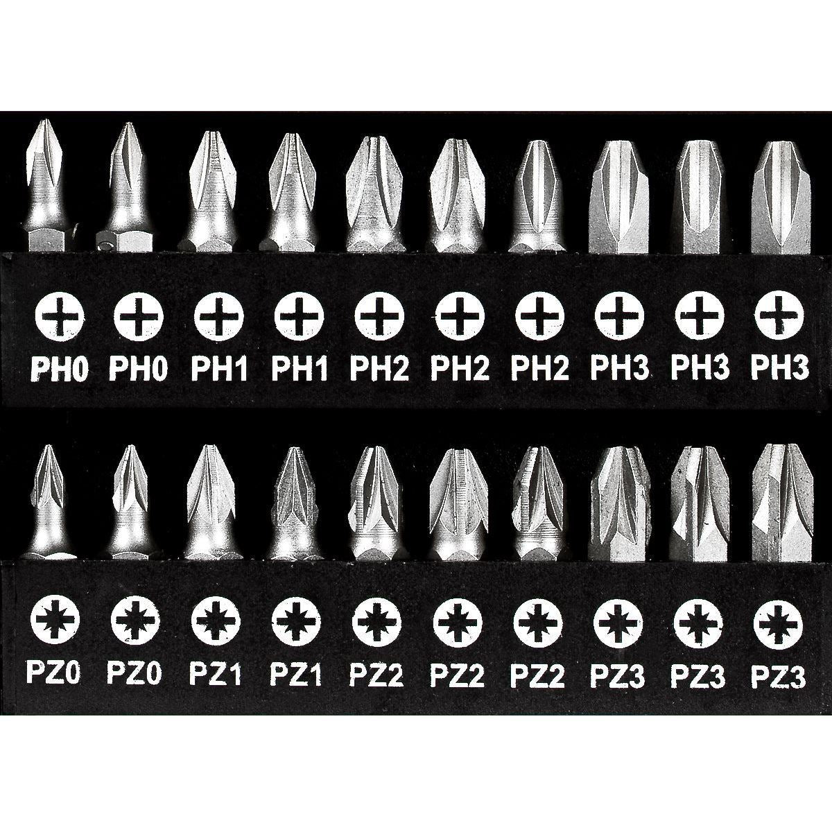 Pozidriv (PZ): PZ0 ×2, PZ1 ×2, PZ2 ×3, PZ3 ×3