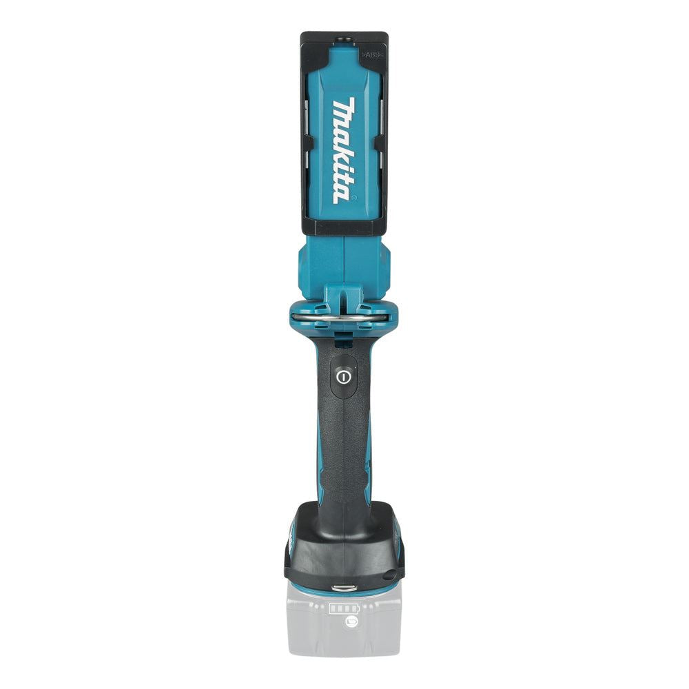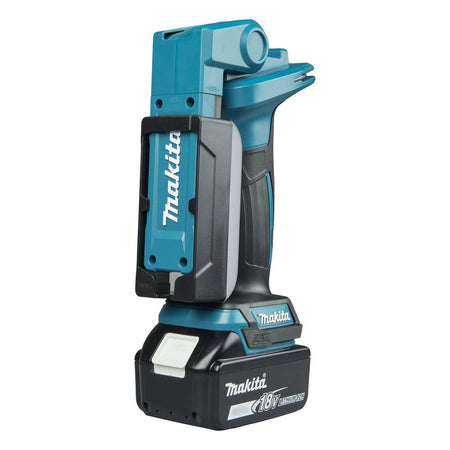 Powerful LED worklight with LXT® battery. Versatile work light providing ultra-bright illumination and convenience. Flashlight head folds up and down with 7 positive stops and rotates left to right for multiple lighting angles. Extra Bright 18 LED Flashlight Provides 500 Lumens Large retractable hook allows to hang the flashlight from steel pipes Battery protection system automatically shuts off power when the battery level is low