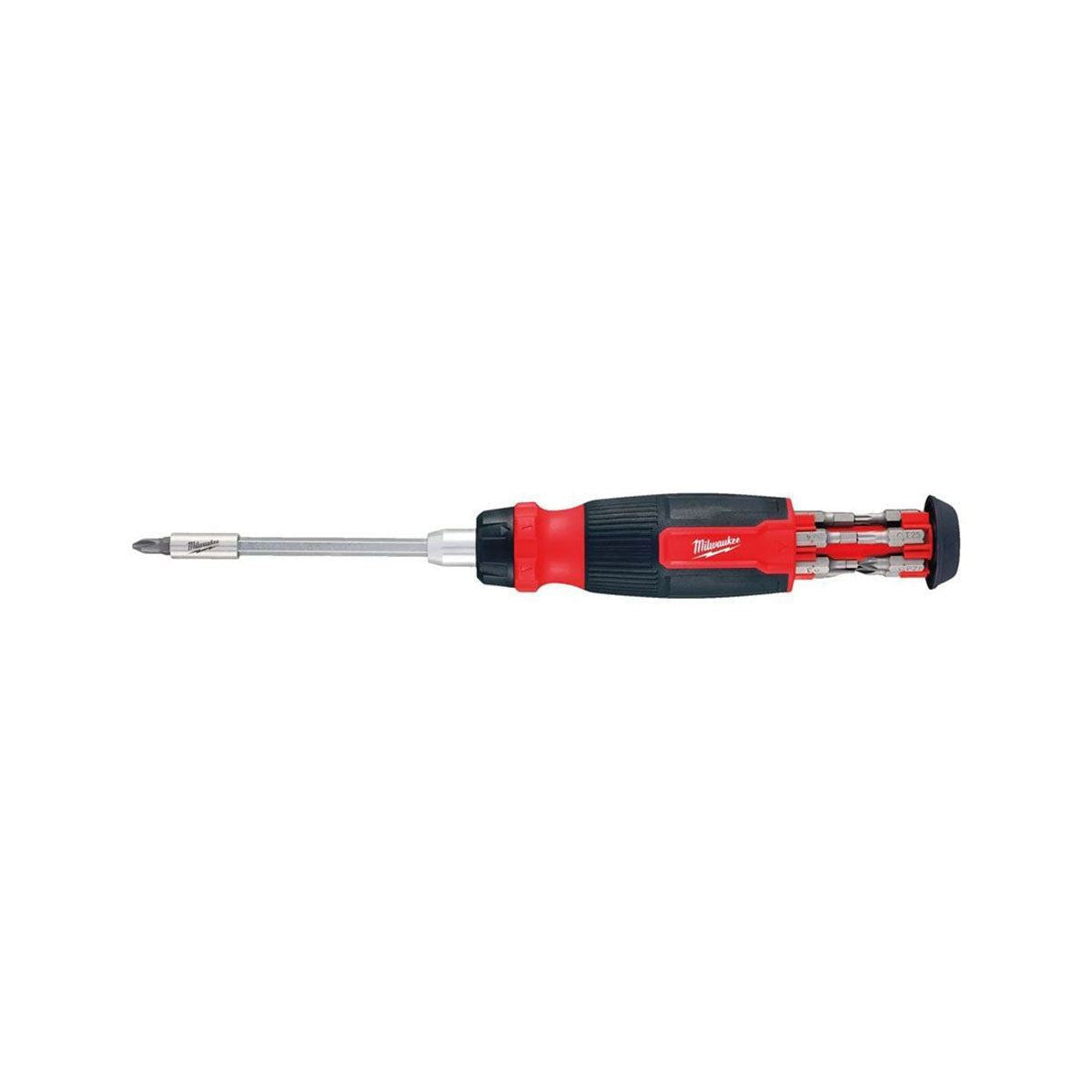 Milwaukee 14-in-1 Ratcheting Multi-Bit Screwdriver is a versatile tool that can be used for a variety of tasks. It features in-handle storage for the included bits, which makes it easy to keep track of them and change them out quickly. The ratchet mechanism allows you to tighten or loosen screws without having to take the screwdriver off the screw head.