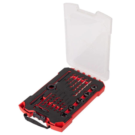 The Milwaukee 17-Piece Metric Tap & Die Set 4932498720 is a precision-engineered toolkit designed for threading applications in various metals, including brass, aluminum, and mild steel. This set includes both taps and dies with laser-etched sizing for clear identification and a protective black oxide coating to resist corrosion. The tools are housed in a durable PACKOUT™ case, ensuring organized storage and easy transport.