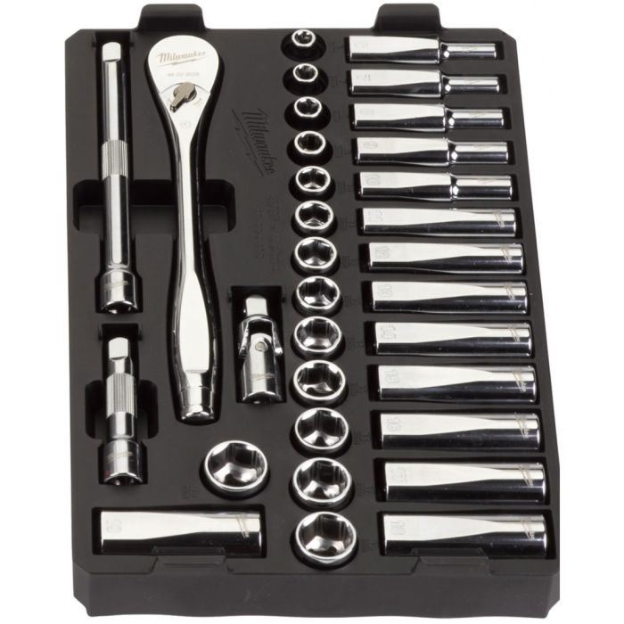 Milwaukee 3/8" Drive Ratchet & Socket Set 32 Piece in Packout Case 4932478813