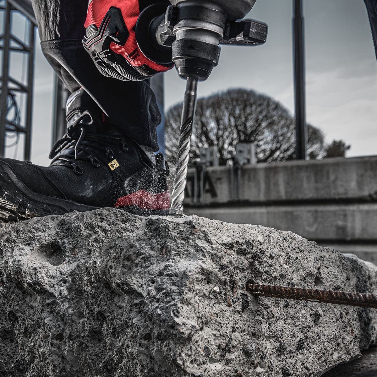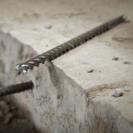 The Milwaukee MX4™ SDS-Plus drill bit is engineered for the toughest applications, featuring innovative fully welded solid carbide tip technology (up to ⌀ 20 mm) for maximum durability in rebar and unmatched drilling speed in concrete.