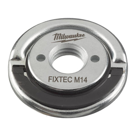 The Milwaukee 4932498607 Fixtec Nut M14 Universal offers a convenient solution for fast and tool-free disc changes on M14 thread angle grinders. Compatible with grinders ranging from 115mm to 230mm, it allows disc changes in just seconds. Its slim 8mm profile maximizes disc contact and suits tight working spaces. Integrated keyholes ensure easy removal with a spanner if overtightened. It's also compatible with grinders that feature automatic or rapid braking systems.