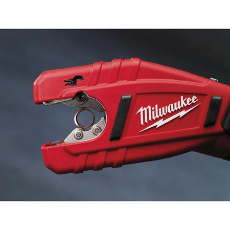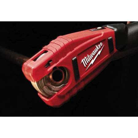 High performance 500 rpm motor cuts 12 mm copper pipe in less than 3 seconds. REDLINK overload protection electronics in tool and battery pack deliver best in class system durability. Auto locking cut mechanism cuts installed copper tubing with as little as 37 mm clearance. Auto adjusting jaws automatically adjust to pipe size. All metal sealed front end rust and corrosion resistant cut head. Slimline soft grip handle. Individual battery cell monitoring optimises tool run time and ensures long term pack durability. On board fuel gauge and LED light - added user convenience and illumination in low lit working conditions. Flexible battery system that works with all MILWAUKEE M12 batteries.