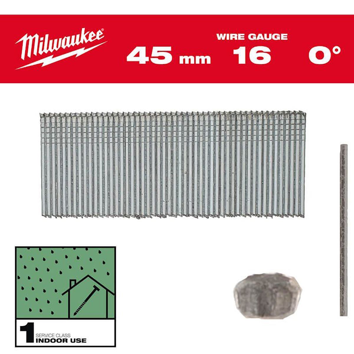 Milwaukee Finishing Nail Galvanized 16G / 0° / 45mm / G / SC1 2500 Piece 4932498315
