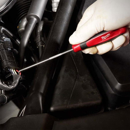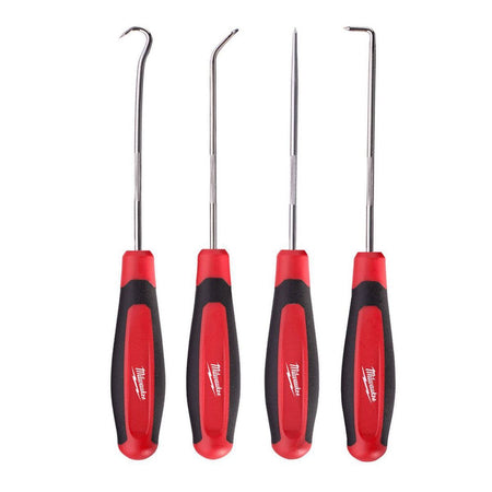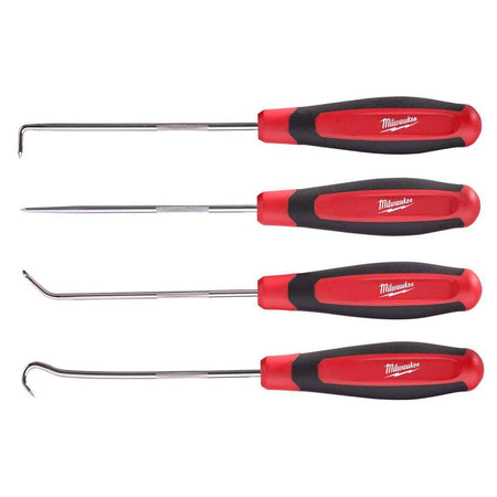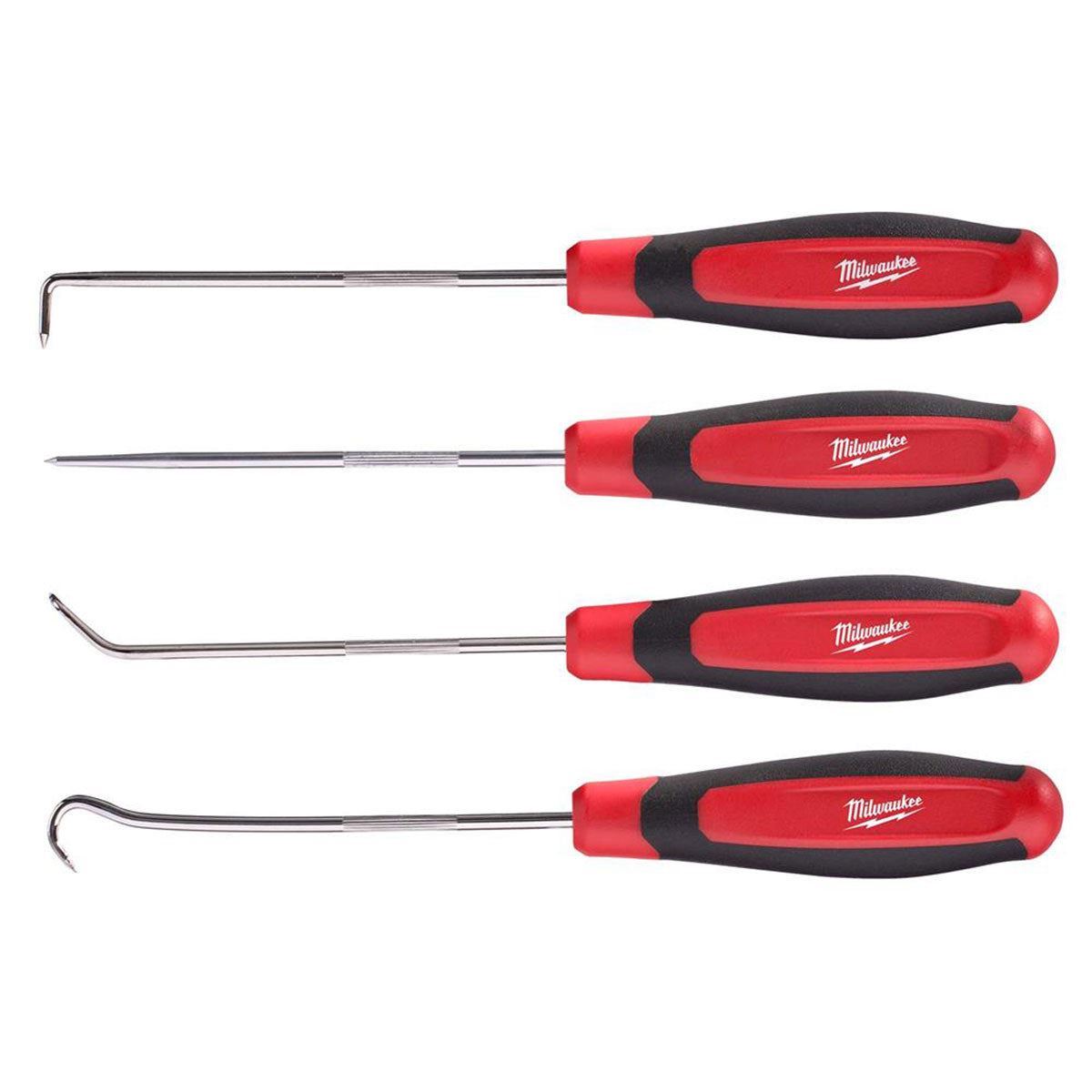 Milwaukee Hook & Pick Set is a 4 piece set of handheld tools to help with smaller and minute tasks, such as separating wirings or making a small hole to gain access. It has an all-metal core for maximum durability and rust protection. The chrome-plated shanks reduce corrosion and provide superior rust protection, while the comfort grip handle and precision knurling increase tool control and user comfort. It comes in an easy-access storage tray for long-term tool storage.