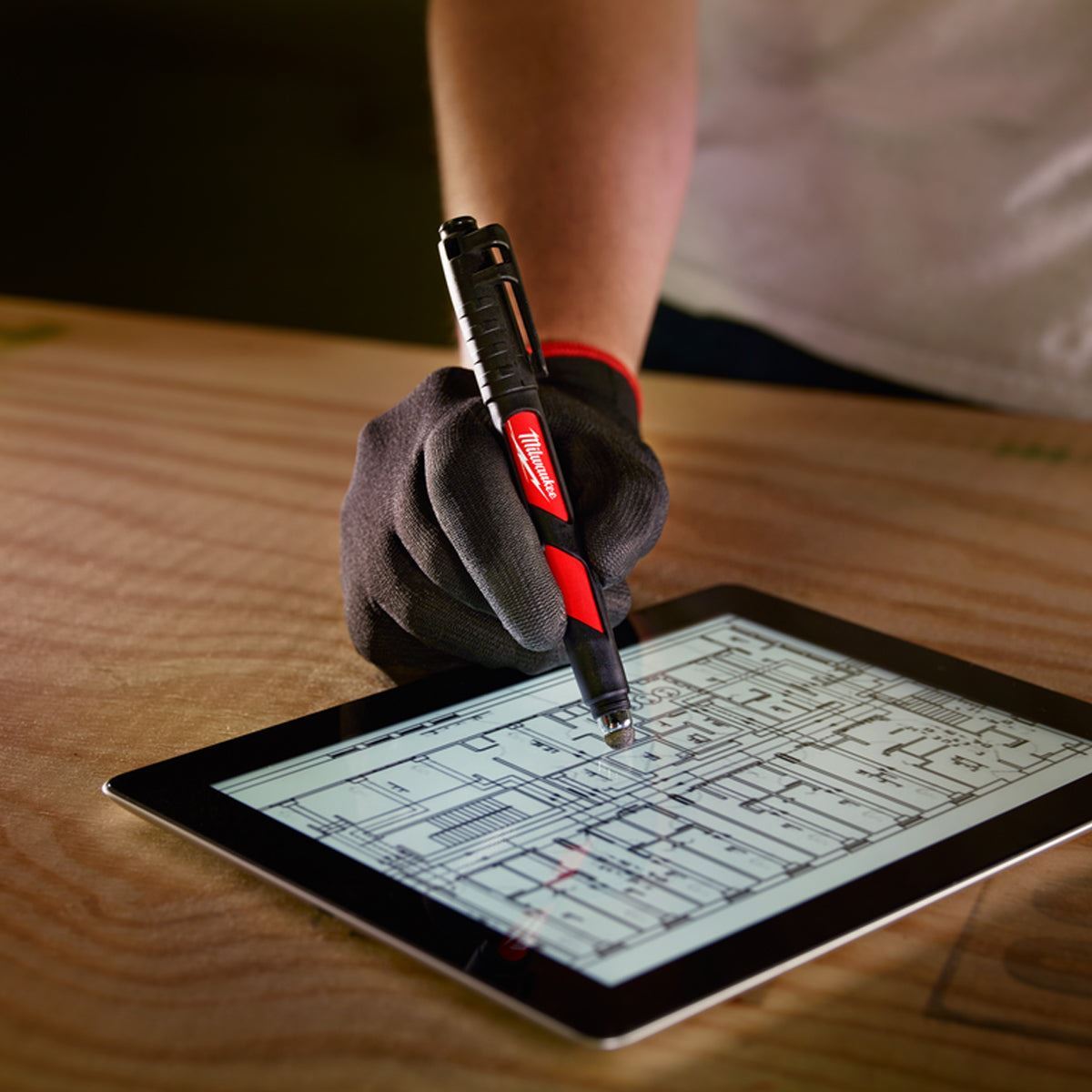The Milwaukee INKZALL® Jobsite Stylus and Marker is designed for using touch screen devices like iPads and iPhones while a user is wearing gloves.