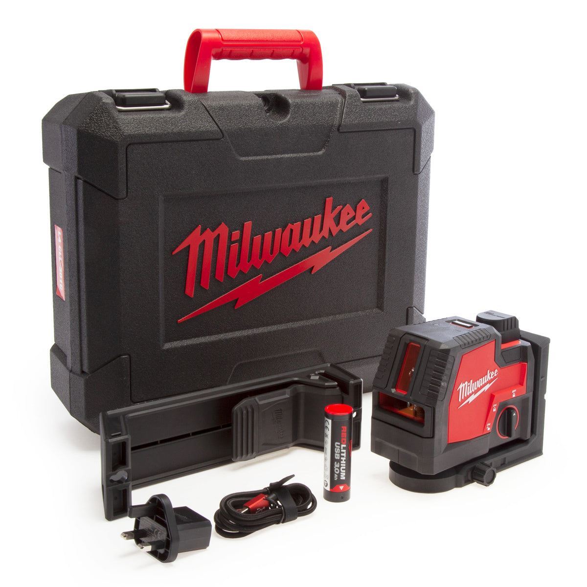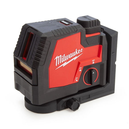 This L4 CLLP-301C Green Cross Line Laser With Plumb Points is part of Milwaukee's 4V REDLITHIUM USB range of tools. Rechargeable via USB cable, this laser provides an all-in-one functionality with horizontal levelling, vertical alignment and plumb point transfer from floor to ceiling.