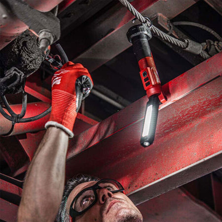 TRUEVIEW high definition lighting with up to 550 lumens Up to 5 hours of run time on USB REDLITHIUM 3.0 Ah battery pack IP52 rated for water and dust resistance and can withstand up to 2m drops 220° vertical light head rotations with single or both panel light option for convenient directional lighting Magnetic attachment for hands-free use and hook attachment for secure storage Conveniently charge REDLITHIUM USB battery internally with USB-C cable from USB power source or AC outlet (wall plug not included) 4-in-1 stick light features 4 selection functions for precision focusing during inspection, task or directional lighting that allows for full control of the beam output and intensity in any position