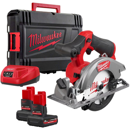 Milwaukee M12FCS442-502X 12V Brushless 140mm Circular Saw with 2 x 5.0Ah Battery Charger & Case 4933493490