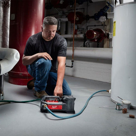 18V transfer pump with 3.4 kg in weight, it's lighter than other corded transfer pumps with an equal performance With a flow rate of 1817 l/h, it can deliver 908 l of transferred water with one M18™ 5.0 Ah battery charge REDLINK intelligence can recognise when the tool stops moving water and automatically shuts itself off to avoid dry pumping The tool's flexible impeller and powerful motor generate a lift height up to 5.5 m and a head height up to 23 m ¾″ BSPT male thread reception for any standard water hose available. For the inlet, a hose with 19 mm inner diameter is recommended, for optimised performance To be used for water, clear of debris only Flexible battery system: works with all MILWAUKEE M18 batteries