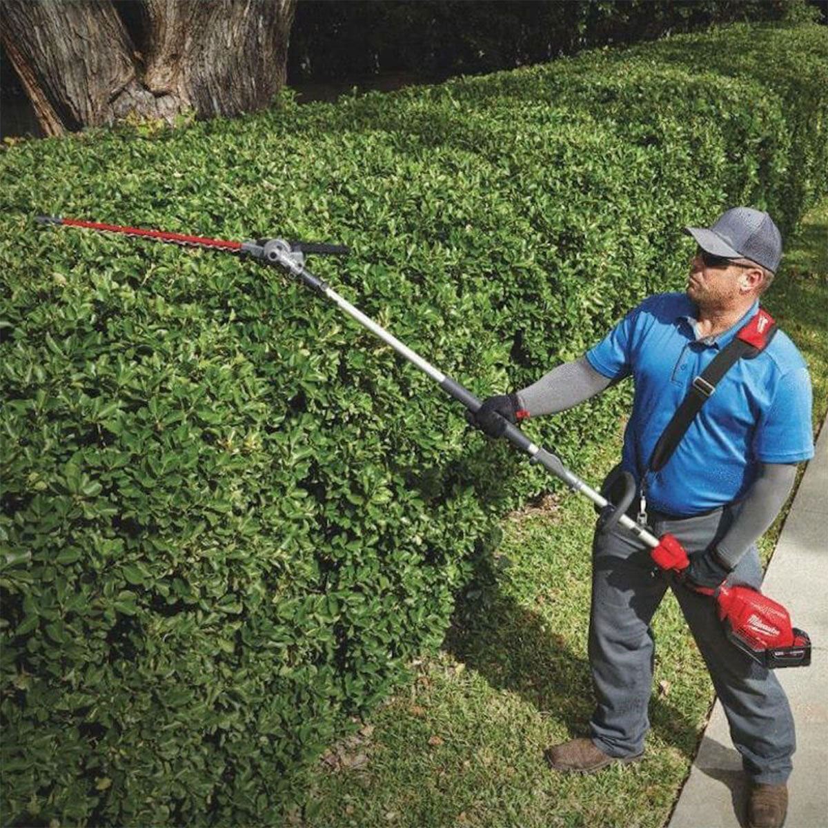 Easy to attach and detach Protected drive shaft Durable construction for outdoor use Padded Grip for optimal hand placement and increased comfort Positive-locking mechanism and alignment guide for fast, tool free attachment changes Compatible with M18 FUEL Outdoor Power Head, 10" Pole Saw and Hedge Trimmer Attachments 91cm of additional reach making the tool much safer to use without the need for a ladder