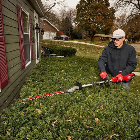 Milwaukee M18FOPH-SHTA QUIK-LOK Short Hedge Trimmer Attachment is part of the Milwaukee QUIK-LOK system and is compatible with the M18 FUEL power head (sold separately). This attachment is designed for trimming hedges and shrubs, providing a convenient and efficient way to maintain your landscaping. The QUIK-LOK system allows for easy attachment changes, making it versatile for various outdoor tasks.