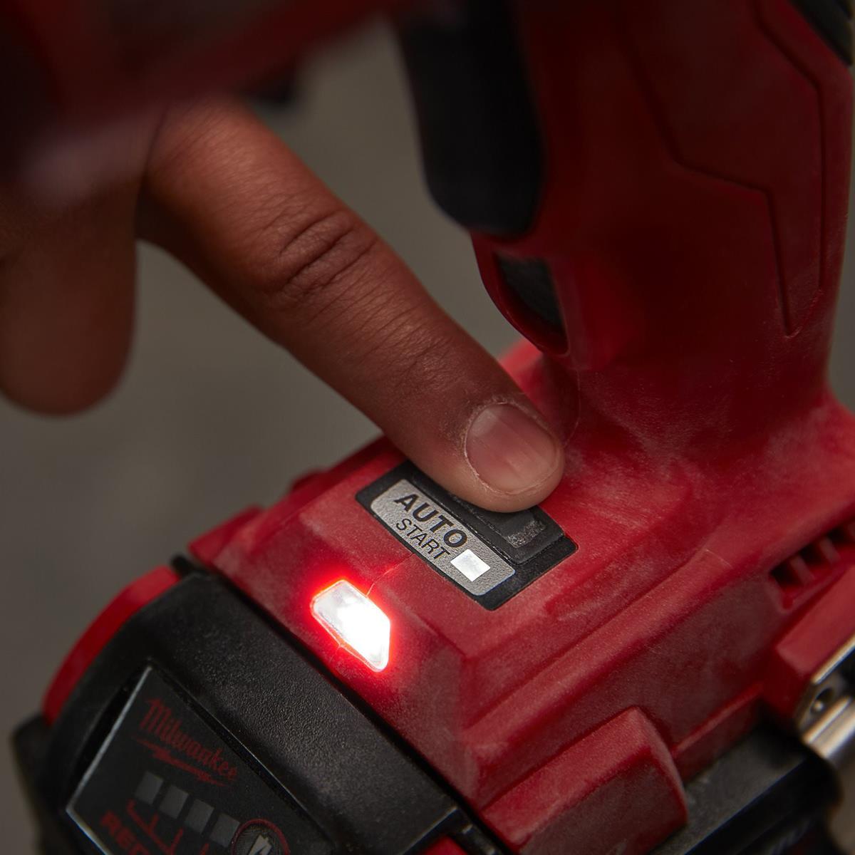 AUTO-START technology: When activated the power only engages when the screw gun is pushed into the material during application, delivering outstanding run time