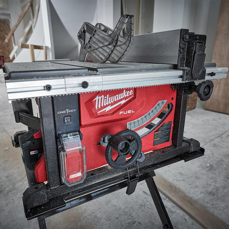 The Milwaukee M18FTS210-0 M18 FUEL ONE-KEY Table Saw delivers corded-level cutting performance with the convenience and portability of a cordless platform. Powered by advanced M18 FUEL technology, it achieves consistent rip cutting and impressive runtime when paired with HIGH OUTPUT or FORGE batteries. ONE-KEY tool tracking and remote locking enhance security and fleet management on busy jobsites. Precision features such as the rack and pinion sliding fence, quick-change guard, and riving knife ensure accurate, efficient operation. Designed for jobsite practicality, it includes onboard storage, an integrated carry handle, and direct dust extraction compatibility.