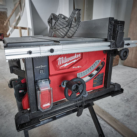 The ONE-KEY M18 FUEL table saw delivers the power to rip cut at the same feed rate of an equivalent AC saw, with the ability to cut 190 m of 19 mm OSB board on one 12.0 Ah battery charge