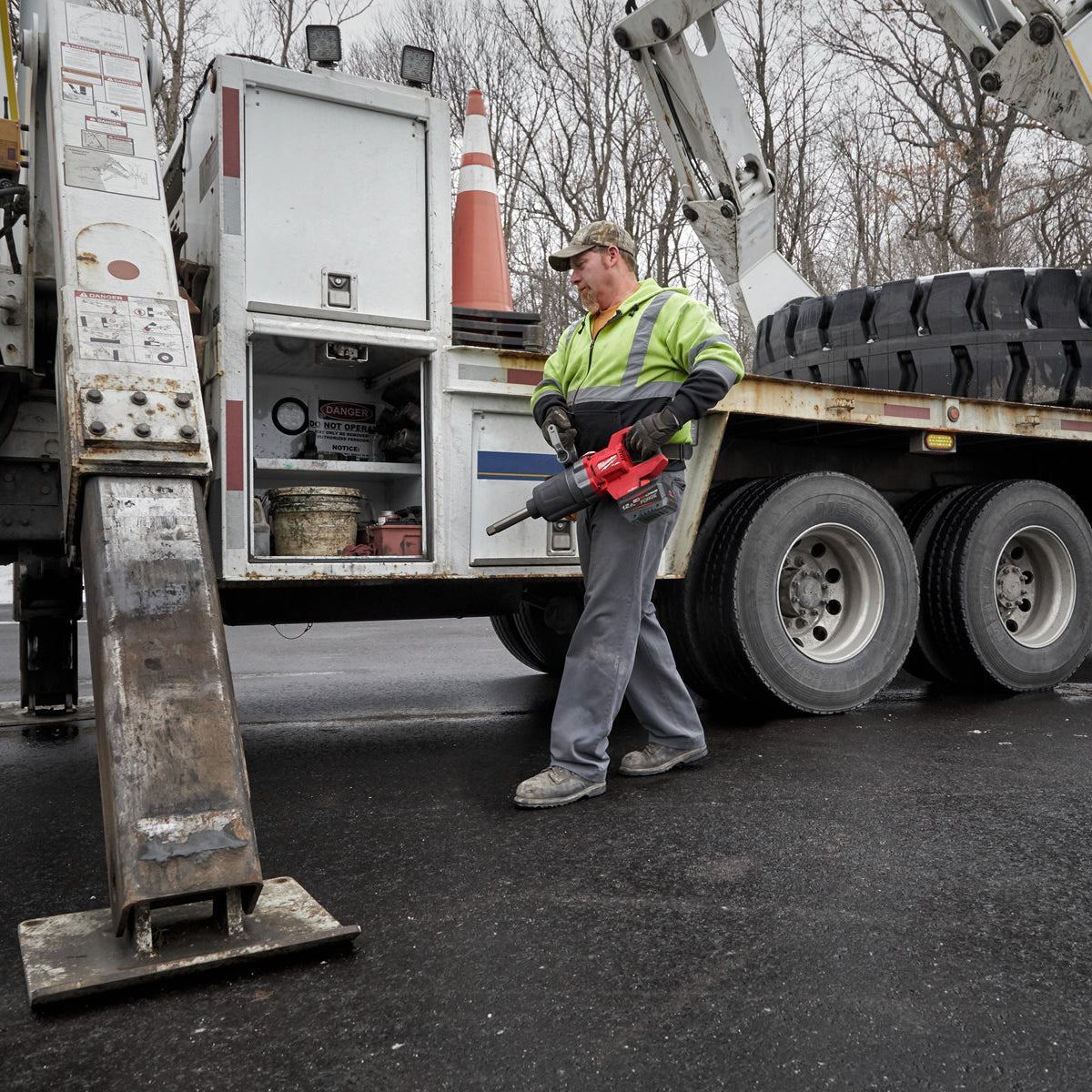 The M18 FUEL D-handle high torque impact wrench with a 150 mm extended anvil delivers 2576 Nm of fastening torque replacing AC, petrol or pneumatic solutions Delivers up to 2711 Nm of nut-busting torque that enables bolts up to M42 to be unfastened The 4 -Mode DRIVE CONTROL allows the user to shift into four different speed and torque settings to maximise application versatility The integrated blow counting sensor enhances the consistent repeatability of the chosen torque setting ONE-KEY™ tool tracking & security offers a free of charge cloud-based tracking network and inventory management platform for your tools. ONE-KEY™ also features a remote locking functionality. Customisation function allows for precise tool adjustment to application Lug nut mode when enabled through ONE-KEY will automatically shut the tool off when it comes into the range of 475 Nm - 610 Nm to prevent over-tightening of lug nuts Tri-LEDs deliver high definition lighting to increase workspace visibility The HIGH OUTPUT system of tools elevates the M18 FUEL technologies to a new level and delivers extended performance and extended run time. These tools are designed to maximise the partnership with HIGH OUTPUT and FORGE batteries