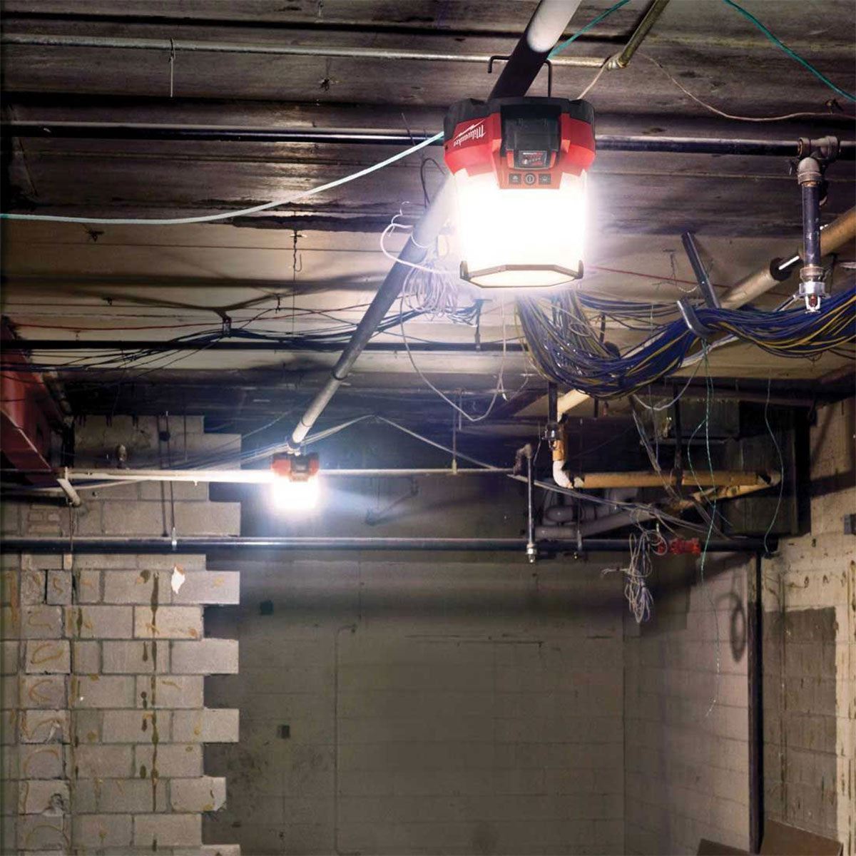 ONE-KEY tool customisation allows user to control brightness and set light settings remotely ONE-KEY tool tracking & security offers a free of charge cloud-based tracking network and inventory management platform for your tools. ONE-KEY also features a remote locking functionality Optimise brightness and run time by adjusting the light output between 0 - 4400 lumens Program automatic schedules to decide during which days/times the light is running TRUEVIEW high definition lighting solutions combine the most advanced LED technology 180° and 360° electronic light control for large area and task lighting Dual power source, powered by either M18 Redlithium battery packs or use of 110V 2.5 m hardwired cord Dual power source, powered by either M18 Redlithium battery packs or use of 2.5 m hardwired cord AC outlet gives the possibility to string multiple lights together Up to 8 hours of run time on low setting when powered by an M18 Redlithium 5.0 Ah battery pack (sold separately) Highly durable and impact resistant polycarbonate lens to protect the light from rough jobsite conditions IP54 rating in battery mode - light is protected from dust and splashing water Security cable included