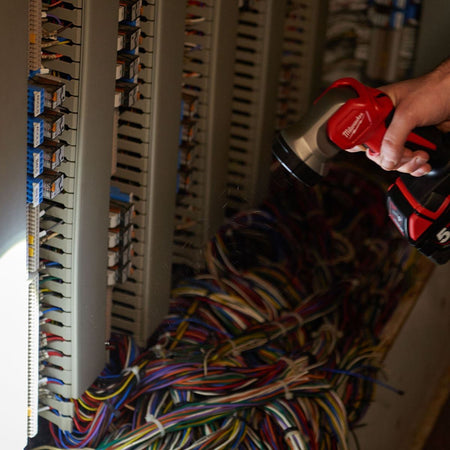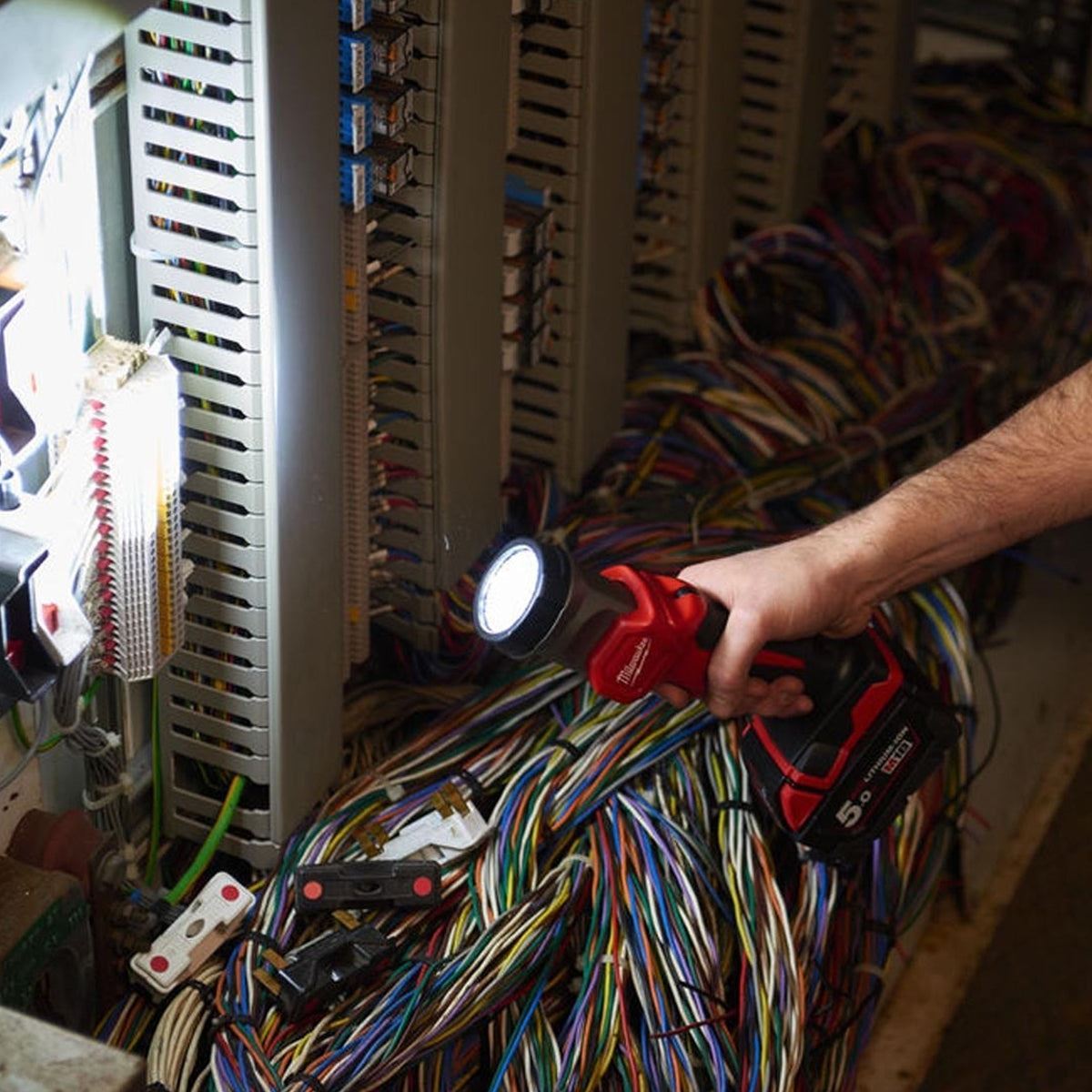 The 120 Lumen LED light is 2x brighter and whiter than conventional incandescent bulbs M18 LED electronics deliver 2x longer run time on a single charge with less heat Sealed aluminium head is designed for impact- and weather-resistant durability 135° rotating head allows the user to easily direct the light beam at the desired work area Integrated hook for hands-free use Flexible battery system: works with all Milwaukee M18 batteries