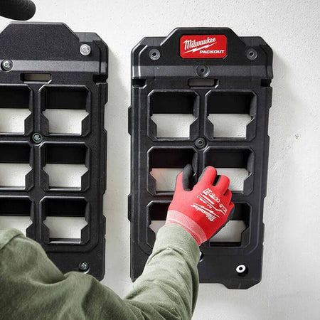 Multiple mounting configurations Turn packouts into stationary shop storage Connects to all Milwaukee packout modular storage Constructed with impact-resistant polymers for the highest durability Metal reinforced mounting points for carrying high weights Organise your shop with packout boxes and wall accessories