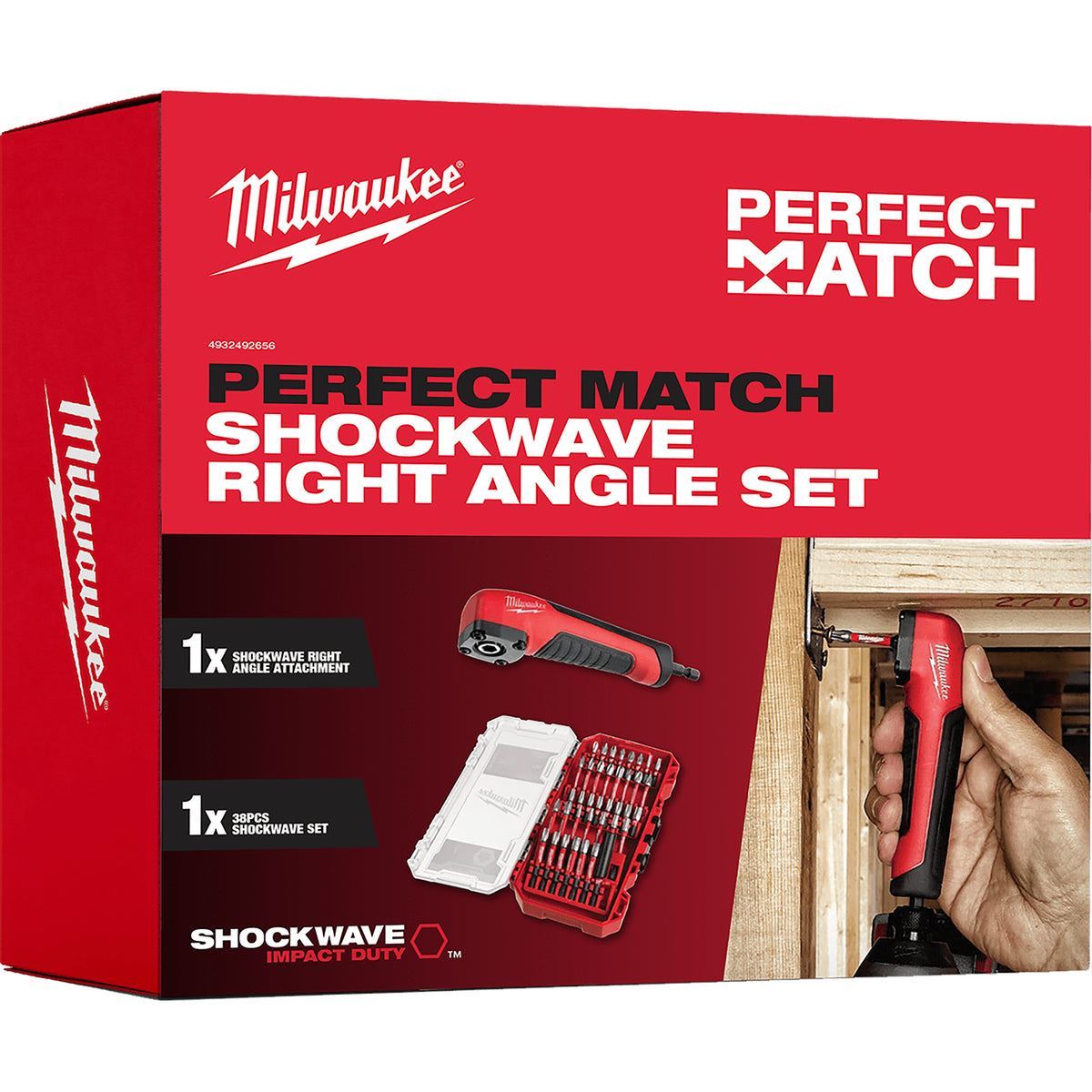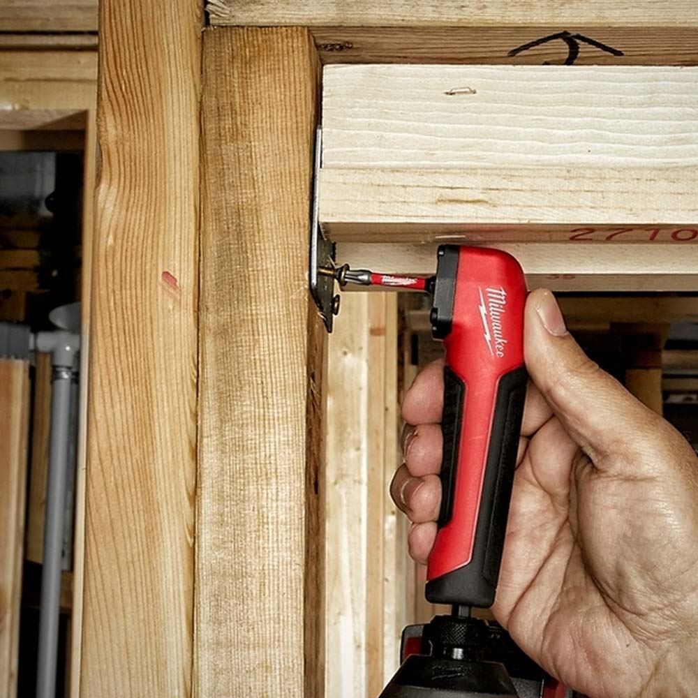 The right-angle attachment is a useful device for screwdriving or drilling applications in restricted, difficult-to-reach areas Impact-rated: suitable for use with the latest 18V impact drivers as well as cordless drill drivers Internal shock zone and advanced gear design for excellent power transmission and impact durability For all 1/4" hex driving and drilling accessories Very compact design: only 36 mm in height and a true 90° angle to allow access into confined spaces Ergonomic rubber over mold for secure and comfortable handling Laser-hardened wear guard tip for improved wear resistance and protection of the fit over the life of the bit Shock zone geometry is designed to flex The shock zone reduces stress at the tip, resulting in fewer tip breakages The combination of the shock zone design and special heat treatment absorbs impacts and allows the bit to flex with spring-like action Custom-engineered steel - Milwaukee's custom metal formula makes the shockwave bits more resistant to shock from impacting