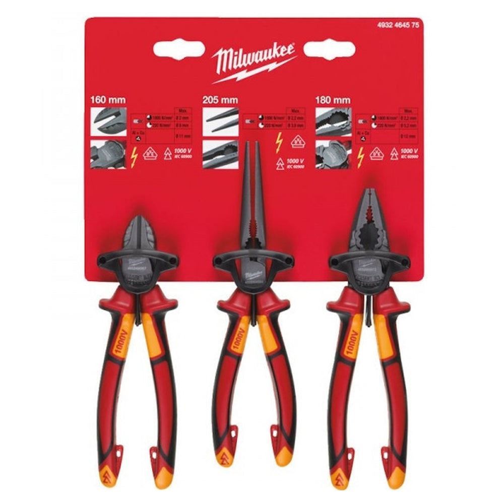 Milwaukee 4932464575 VDE Pliers 3pc Set Diagonal Cutter, Long Round Nose Plier, Combi Plier