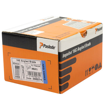 Paslode 300271 16g x 38mm ELGV Angled Electro Galvanised Brads Nails Fuel Pack 2000 with 2 Fuel Cells