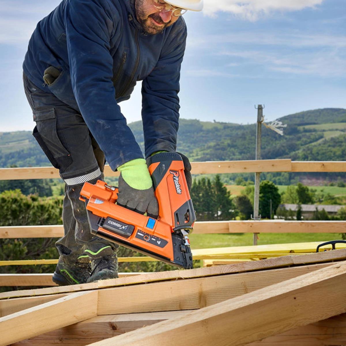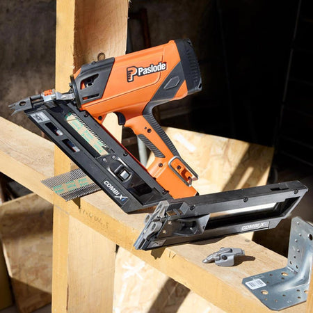 The Paslode 014012 Combi Xi 2-In-1 First-Fix Framing Nailer is a powerful cordless wood and metal framing nail gun delivering 105 joules of driving force for 51–90mm framing and hardened twist nails. Designed as the world’s first 2-in-1 solution, it features quick-release magazines and interchangeable nose pieces for seamless switching between timber framing and metalwork applications. The high-performance 2.1Ah lithium battery provides fast charging with up to 13,000 shots per charge and 200 shots in just 2 minutes. Engineered for trade professionals, it offers cold weather operation down to -15°C, improved accessibility in tight spaces and faster, more efficient fixing compared to hand nailing.