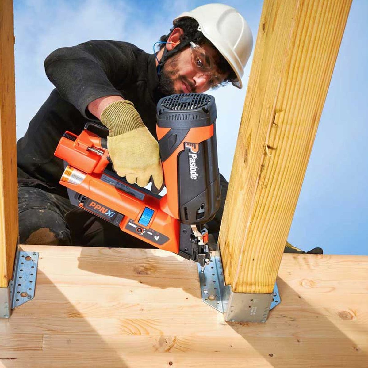 The Paslode PPNXI First Fix Framing Nailer is also referred to as a framing nailer. They are used to complete rough woodwork, such as flooring, wood framing, timber frame erection, and roofing, mainly within the construction industry. It really sticks it to the competition. It provides an efficient and safe way of installing hangers, brackets, and straps. As such, it is bespoke and designed for trade professionals like carpenters and roofers. It has a new battery position, which gives the Paslode a more even weight distribution, reducing injury and arm fatigue, which ultimately delivers better accuracy on the job. The battery is also compatible with 7 other tools. This nailer has a Last Nail Lock Out system, which stops the tool from firing when empty, preventing tool damage. It can easily cover difficult-to-reach areas, giving you much more freedom and flexibility in the jobs that you need completely. It has the ability to remove nail jams and drive hardened, twisted nails into solid wood beams.