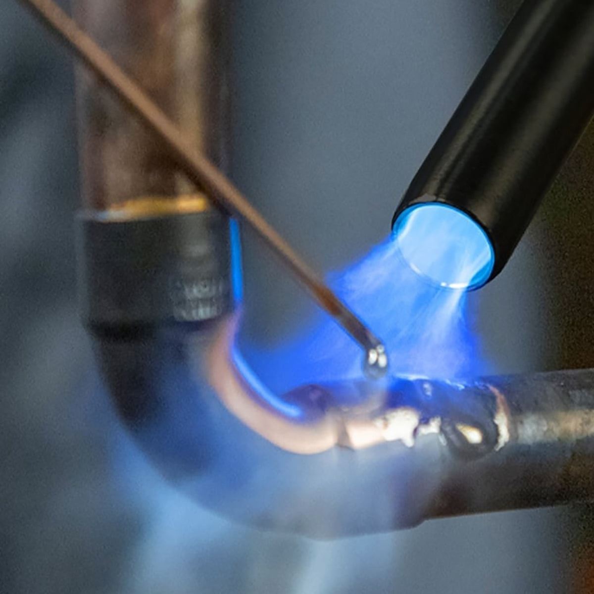 The Cool Tip Burner, compatible with the SUPERFIRE PRO, is designed for safe and effective heating and soldering applications. Engineered with advanced cooling technology, this burner keeps the tip cool to the touch even at maximum flame adjustment, providing added safety during extended use. Featuring a powerful cyclone flame, it wraps around pipes and surfaces to deliver consistent, even heating. This unique flame profile ensures efficient heat distribution, making it ideal for precise soldering and heating tasks where control and safety are paramount.