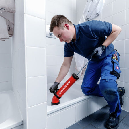 Quickly remove simple blockages in connecting pipes of washbasins, sinks, tubs, and toilets